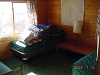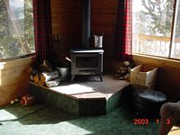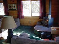 The interior is the inside of the logs with other walls consisting of studs supporting aspen paneling.