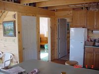 the absence of any paint or sheetrock. The 32 ft x 24 ft structure consists of machined 'D' shaped logs that are screwed