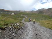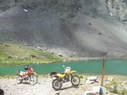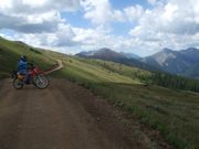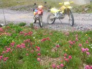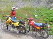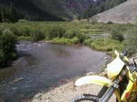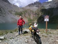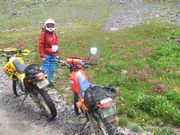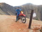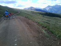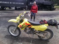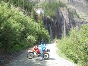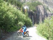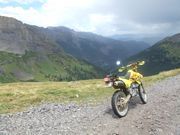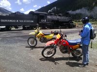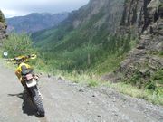 ![]() Click here for LARGE trail map Dirt Bike Trail Ride over High Mountain Passes with Russ. When we arrived at the campground, we were invited to share a dinner with a family from Phoenix, Arizona. Rick, Abigal, Alessa and Mom. The first day of riding we rode loops from Ouray to Silverton via Corkscrew Gulch, Hurricane and Cinnamon Passes. (I forgot to bring my camera so Russ took all the pictures - coming) The second day from Ouray to Telluride via Black Bear (Bridal Veil and Ingram Falls) and Imogene Passes. Imogene was riden in the wet until croosing the summit. The notorious section on Black Bear gave me some trouble, and I had to walk my bike down about 50 feet. I got passed by a young KTM 525 rider standing on his pegs while I was struggling for control (sigh - next year maybe). The third day (easy) we rode county roads and Jeep trails to Crystal Lake and Ophir Pass to check out Columbines. I sent many pictures along the way with my cell phone camera in order to send to Becky as we traveled. We headed down the highway to Silverthorn (saw the Durango to Silverthorn Train) and took the jeep road via Hurrican Pass back to Ouray On the Suzuki DRZ400S's speedo, You can see the overal 'A' miles of the three day trek, 202.2 miles. The 'B' miles of 86.4 is the distance traveled on the last day. |